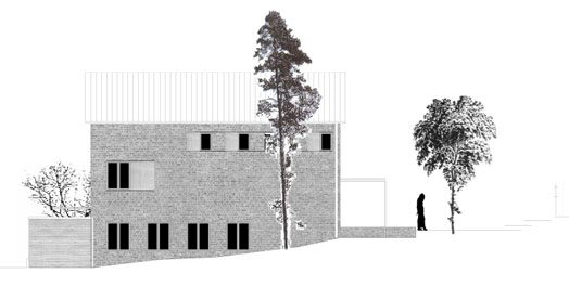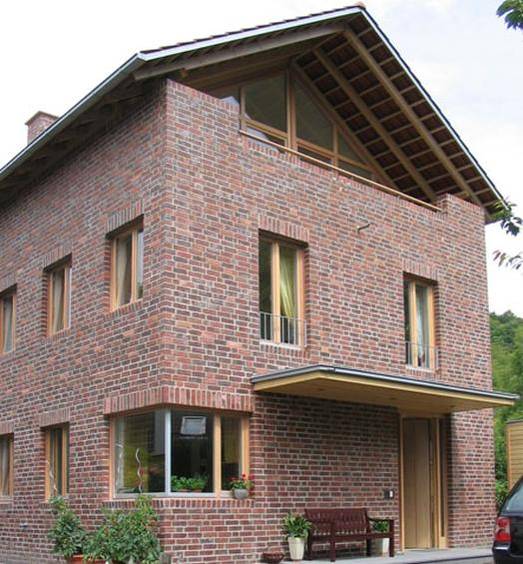 das äußere erscheinungbild ist geprägt durch ziegelmauerwerk und holz,