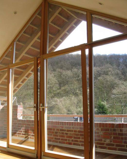 im dachraum beendet ein verglastes giebelzimmer mit blick ins ahrtal die fliessende raumentwicklung des hauses.