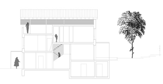 im inneren entstehen durch den halbgeschossigen versatz, blickbeziehungen und raumgefüge die das gebäude offen und für bewohner und besucher begreifbar machen.
