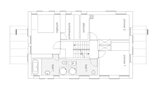 im gebäudemittelteil sind 3 schlafzimmer und 2 bäder eingeplant.